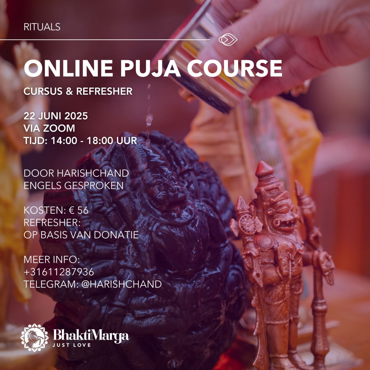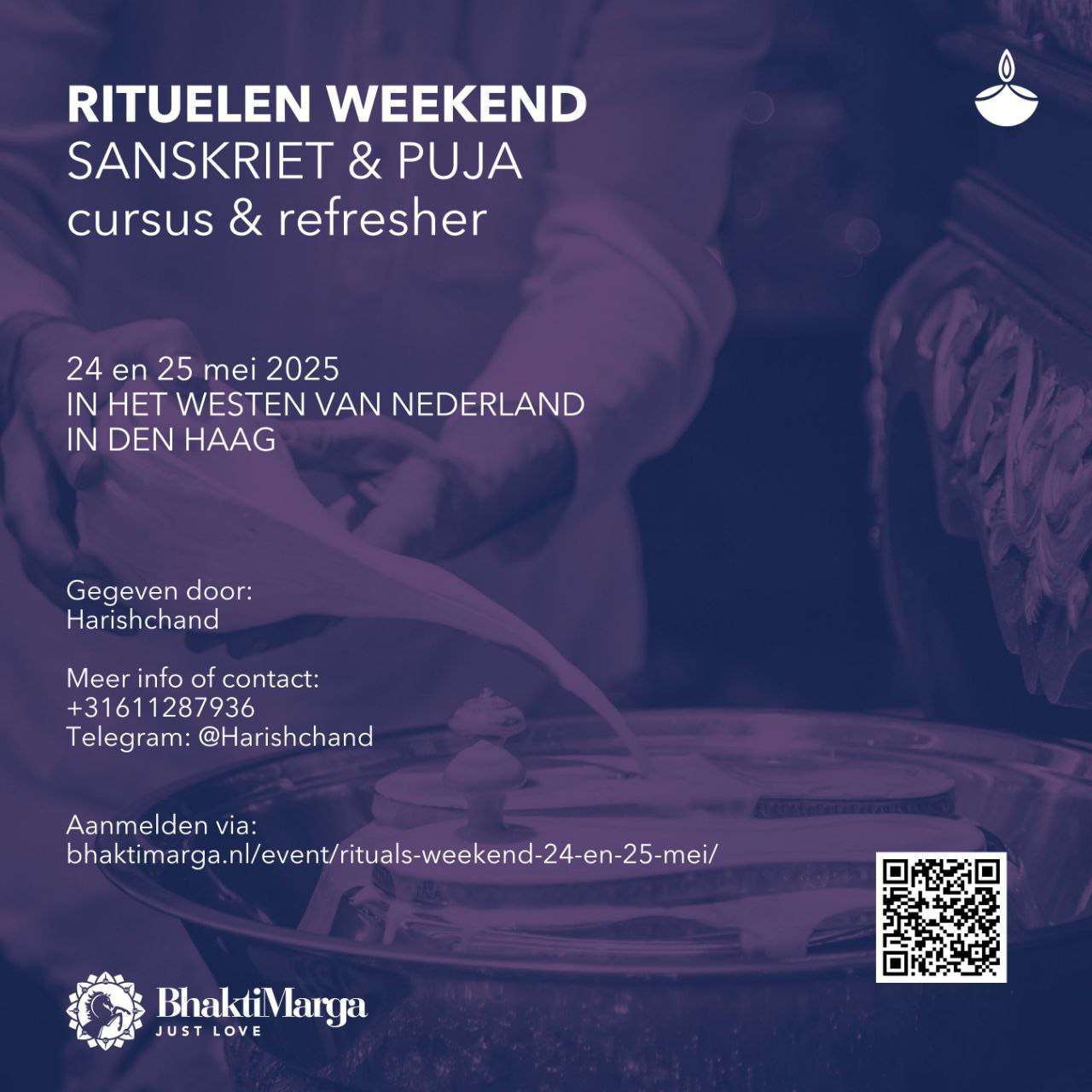 RITUALS WEEKEND >>West Nederland<<Sanskriet, Puja & Abhisekam cursus & opfrissing.(24/25 mei) INHOUD:# Zaterdag 24 mei – Sanskriet cursus# Zondag 25 mei – Puja & Abhisekam OPTIONEEL:– OM zingen– Kirtan / heiligenfilms zaterdagavond VEREISTEN:Sanskrit & Puja cursus iedereen kan deelnemen, toegewijden of nieuwkomers. Abhisekam cursus alleen na het doen van eenvoudige puja voor minimaal 3 maanden. […]